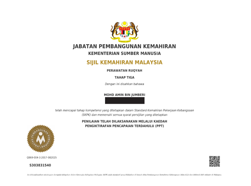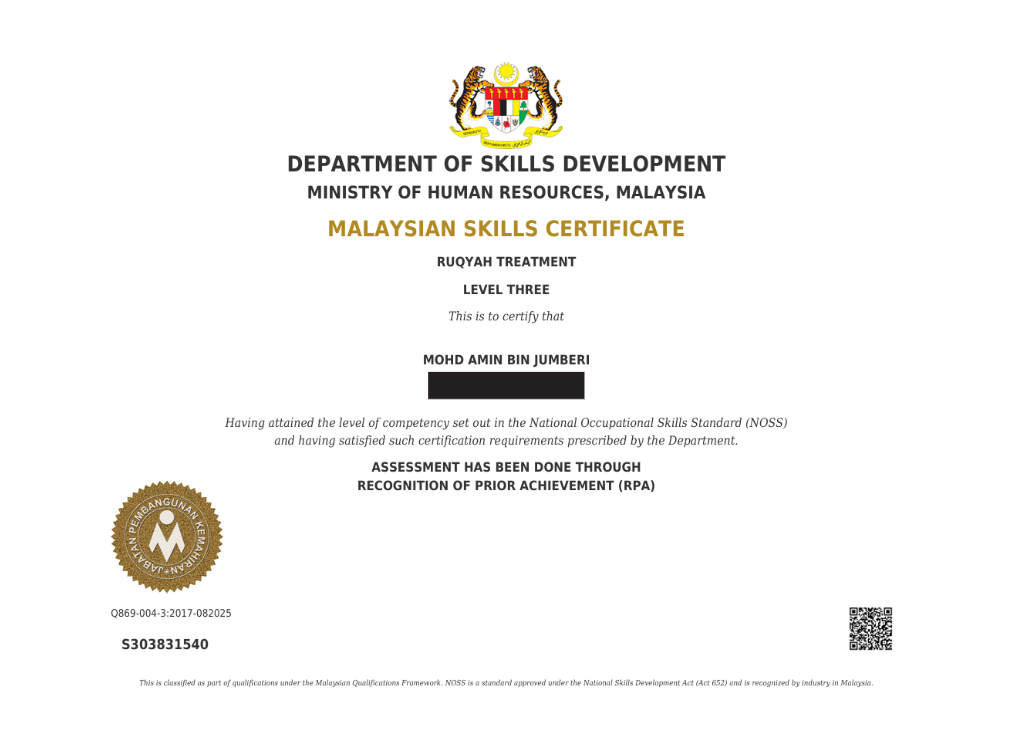 1. Diiktiraf Secara Sah – Pengamal diiktiraf oleh kerajaan sebagai seorang Profesional dalam bidang perubatan tradisional dan komplementari.